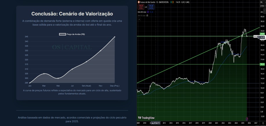 - Ciclo Pecuário e Oferta Restrita: O fator final e decisivo é a oferta. Analistas do setor são unânimes em apontar que o Brasil está entrando em uma fase do ciclo pecuário de maior retenção de fêmeas. Os produtores, visando a reconstrução do rebanho, seguram as matrizes, o que resulta em uma menor disponibilidade de animais para o abate.